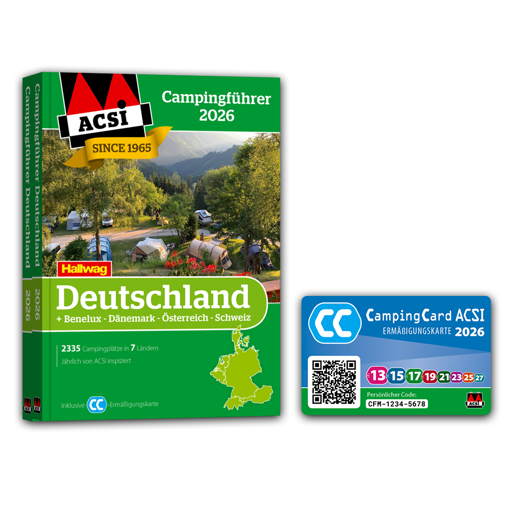- einen Rabattgutschein über 50% für den Jahres-Zugang zur ACSI Camping Europa-App mit allen Campinginformationen**