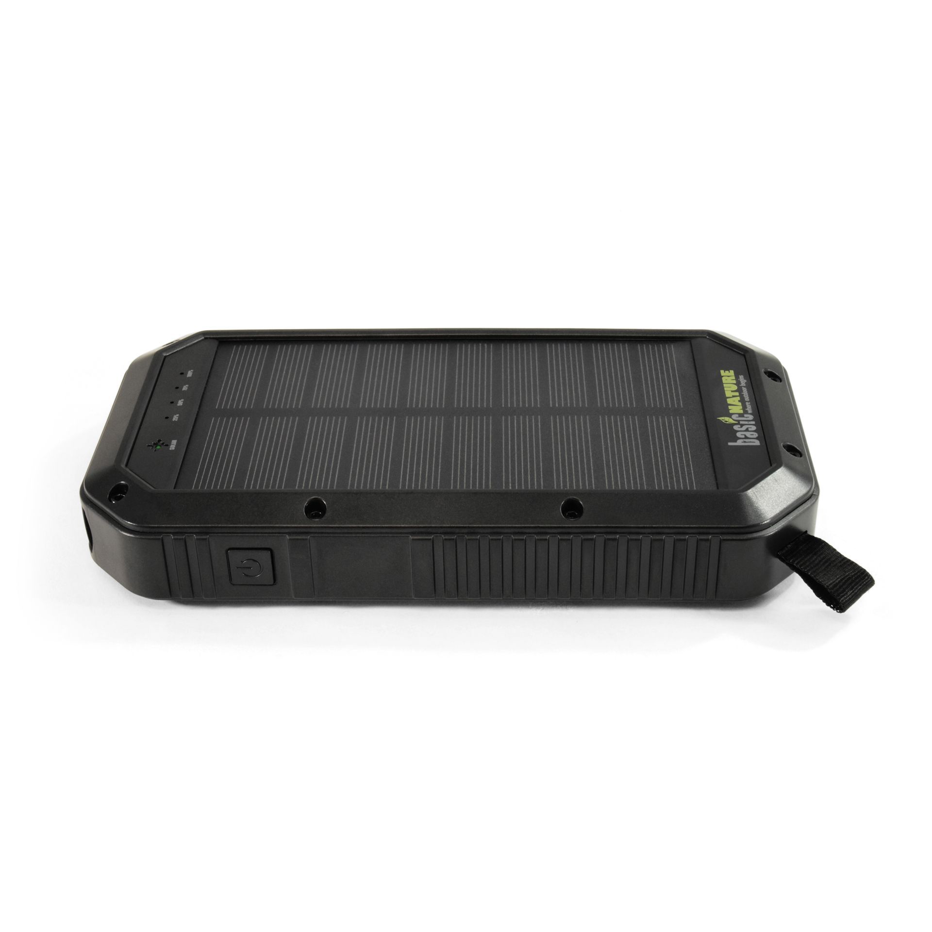 Die Powerbank '20' bietet eine Kapazität von 20.000 mAh. Bis zu 4-5fache Ladung eines Smartphone möglich. Die zusätzliche Funktion Qi "wireless charging" ermöglicht über Induktion ein kabelloses Laden (nur bei Qi-fähigen Geräten). Das robuste und spritzwassergeschützte Gehäuse schützt die Powerbank vor Schäden. Die Anschlüsse sind durch eine Silikonkappe gegen Spritzwasser und Staub geschützt. Das Gerät kann via Micro-USB oder über Solar (abhängig von der Intensität des Sonnenlichts, für Notfälle gedacht) wieder aufgeladen werden. Zusätzlich ist ein leuchtstarkes LED-Display, dimmbar mit 500 Lumen eingebaut, mit einer Brenndauer bis zu 15 Stunden. Die Schlaufe am Gehäuse ermöglicht es die Powerbank im Zelt aufzuhängen oder tagsüber am Rucksack zu fixieren, damit der Akku während des Wanderns geladen werden kann. Die Statusanzeige in Prozent zeigt den geladenen Zustand an. Die Energie wird in einem hochwertigen Lithium-Polymer-Akku mit langer Lebensdauer gespeichert. Das Ladekabel ist im Lieferumfang enthalten.