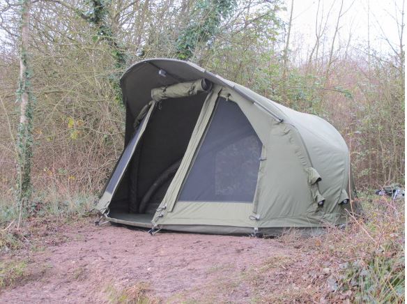 Beim Carp Air 1 sind die Luftschläuche alle untereinander verbunden, so dass der Aufbau schnell erfolgen kann. Das Vordach des Carp besteht aus einem klassischen Stahlgestänge mit Schnellspannverschluss.