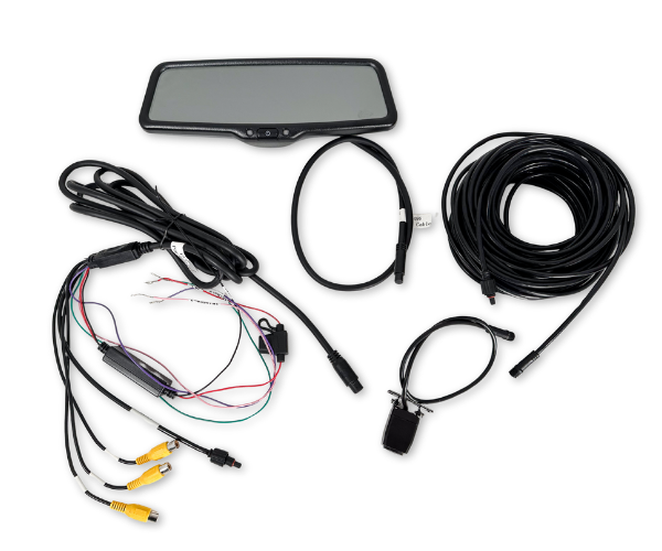 Lieferumfang Monitor mit Spiegelfunktion, HD-Kamera, Leitungsadapter, 15 m Anschlussleitung. Fahrzeugspezifische Halter müssen zusätzlich bestellt werden.