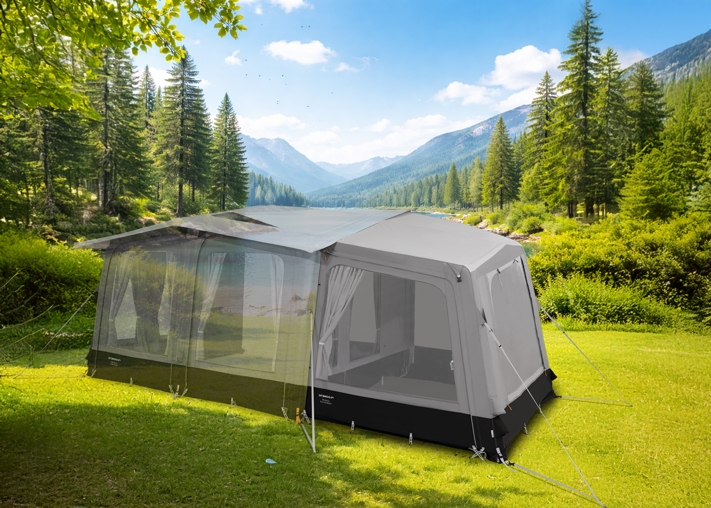 An beiden oder nur an einer Seite können optionale Erweiterungen angebracht werden. Einfach anzippen und von einem Punkt aus aufblasen. Ideal zur Unterbringung von Gästen, oder wenn Sie zusätzlichen Stauraum benötigen.