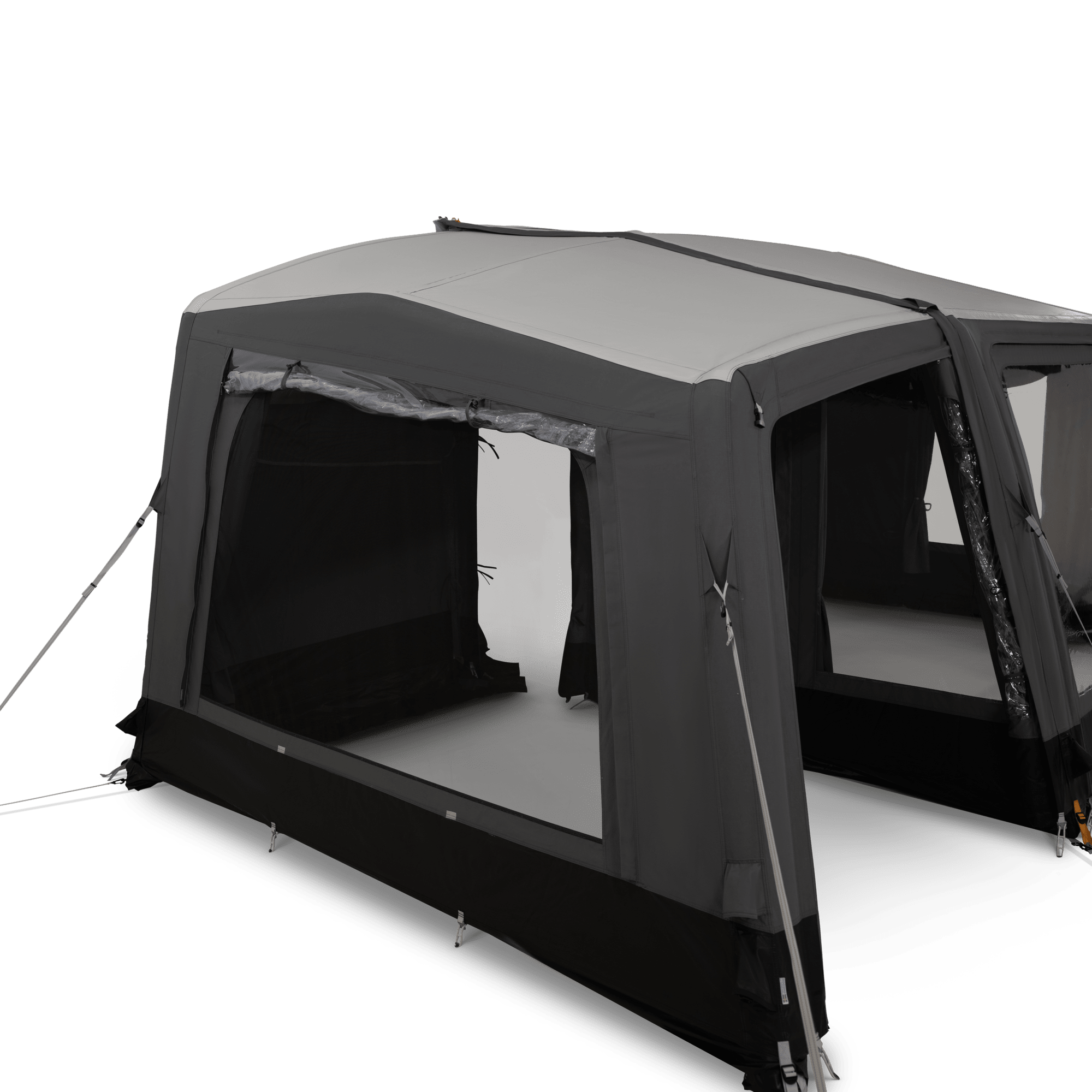 Der Seitenanbau wird einfach eingezippt und über ein Ventil aufgepumpt. Der Anbau ist unabhängig von der Einzugslänge am Wohnwagen.
