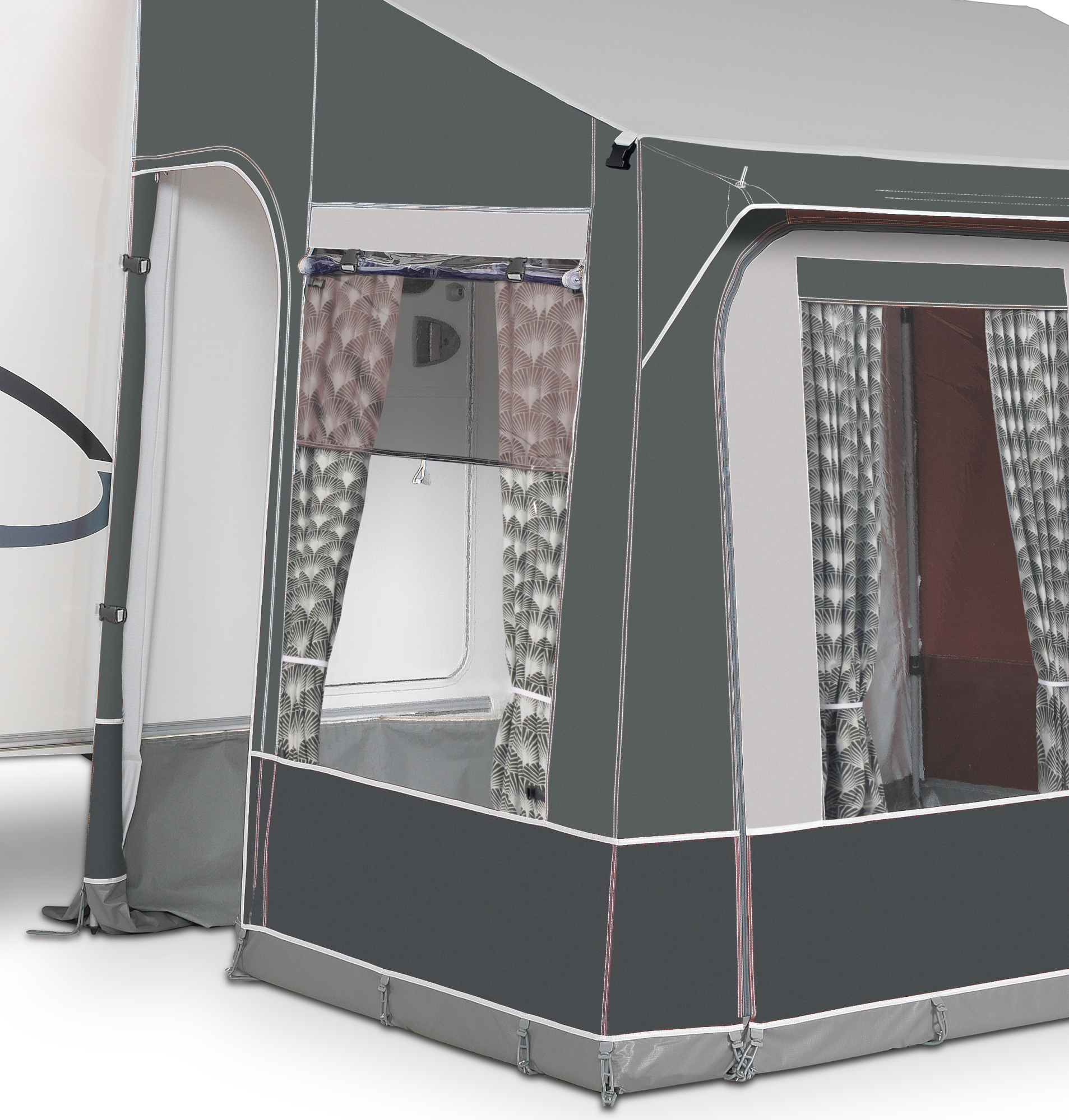 Das Vorzelt Doréma Quattro 225 vereint kompakte Maße mit hoher Stabilität und wetterbeständigen Materialien. Mit einer Tiefe von 200 cm und einem freistehenden Stahlgestänge eignet es sich ideal für den ganzjährigen Einsatz, insbesondere für Camper, die Wert auf Qualität und einfache Handhabung legen.