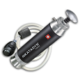 Mit einem Fördervolumen von etwa 1 Liter pro Minute ermöglicht der manuelle Pumpmechanismus eine zügige Wasseraufbereitung. Das Gerät bleibt dabei kompakt und transportfreundlich: 24 cm Länge, 6 cm Durchmesser und ein Gewicht von rund 550 g.
