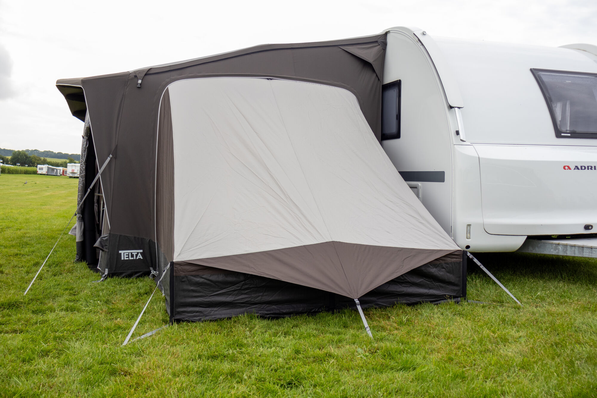 Die Schlaf-Anbau bietet einen privaten und komfortablen Bereich im Vorzelt und besteht aus unserem robusten, wetterfesten AeroTex-Gewebe. Perfekt für Gäste, als ruhiger Rückzugsort oder Umkleide – diese Lösung bietet Flexibilität und lässt sich einfach in Telta Vorzelte integrieren.